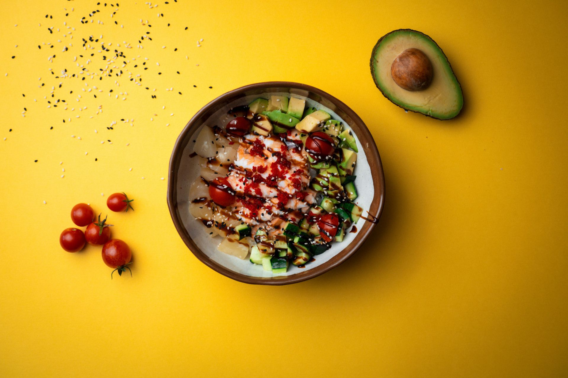 Креветка, огірок, авокадо, чері, рис, ананас, ікра масаго, соус унагі, кунжут.